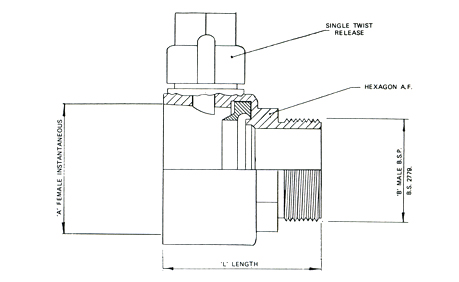 65mm Female Inst (BS336) Single Twist x 2” Male BSP (BS2779)